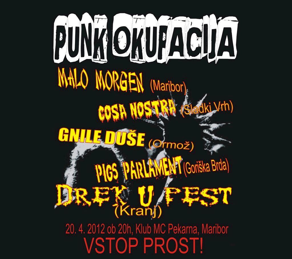 Four guys from Maribor – different generations and soulmates, who found themselves in one band (they were already friends before) because of Ramones, KUD Idijoti, Goblini, Clash, Azra, Partibrejkers and Dead Kennedys. Because of punk and rock and roll with contents. Malo Morgen have been playing for ten years. Mostly, sweat went into the bricks in Pekarna, Maribor and Metelkova, Ljubljana. Who they have listened to and are still listening to, blows from them, around them with the taste of Maribor streets and with the extra of every single one of them four: Uroš, Nikola, Matej and Jadranko.