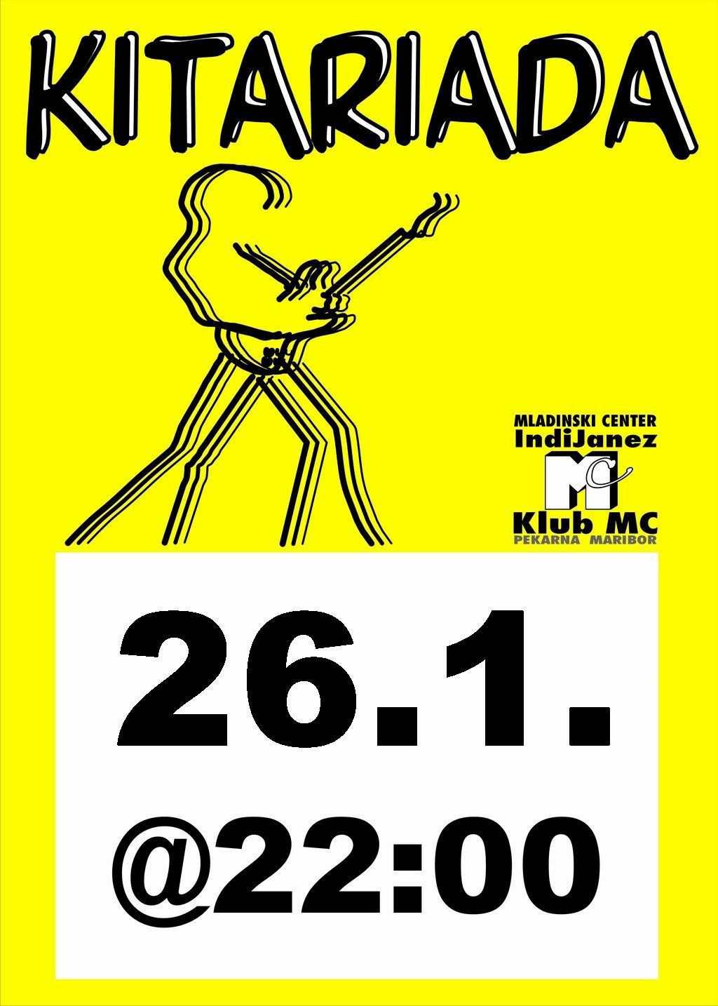 Po več letih, ko je Kitariada redno domovala v MC-ju, smo se odločili, da ponovno obudimo to priljubljeno glasbeno prireditev. V prvi vrsti gre za nastope kitaristov ob spremljavi ritem sekcije, v drugi pa za druženje glasbenikov in ljubiteljev kitarske glasbe.