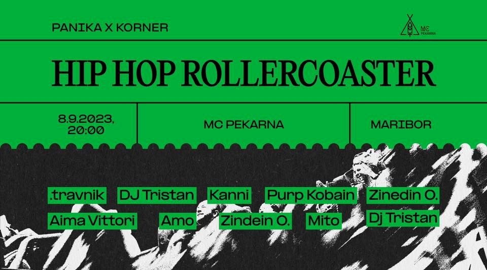 Hip Hop rollercoaster bo potekal 8.9.2023 v MC Pekarni, kjer bodo v ‘Rapid fire’ stilu nastopanja ‘odrepali’ in zagreli dvorano priznani Mariborski artisti.