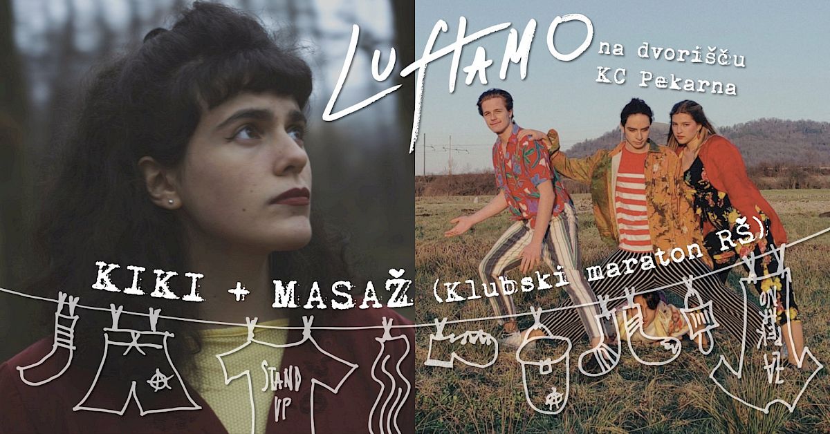 Tokrat nam pomaga luftati Radio Študent v okviru letošnjega Klubskega maratona, ki s koncertno turnejo po različnih prizoriščih po Sloveniji že dvaindvajsetič predstavlja izbrana vzhajajoča imena na slovenski alternativni sceni. V Pekarni bodo nastopili Masaž in Kiki.