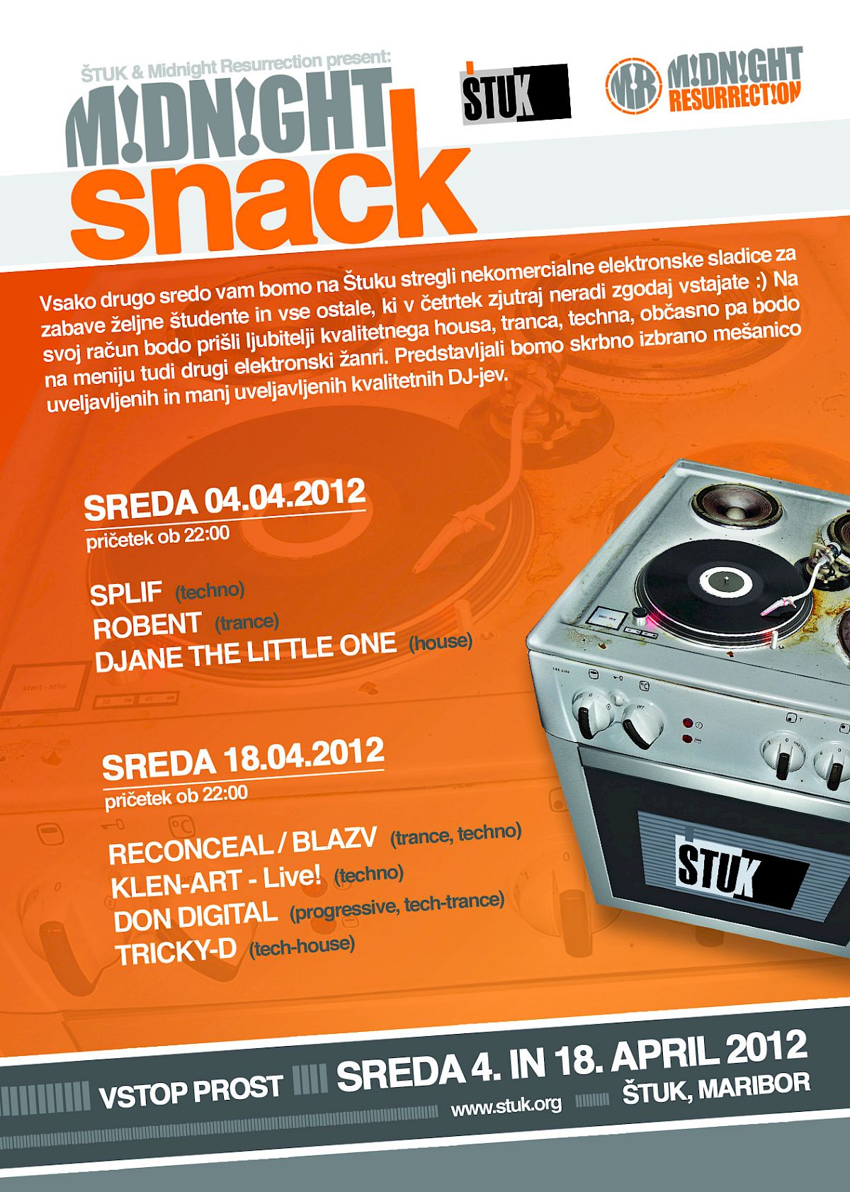Vsako drugo sredo vam bomo na Štuku stregli nekomercialne elektronske sladice za zabave željne študente in vse ostale, ki v četrtek zjutraj neradi zgodaj vstajate :)