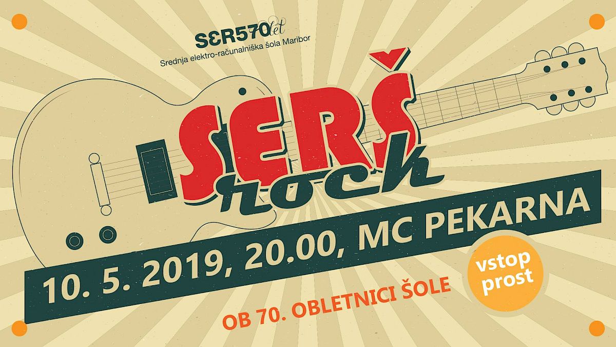 Vabljeni v MC Pekarna na tradicionalni ⚡ 13. SERŠ ROCK, ki ga organizira Srednja elektro-računalniška šola Maribor, tokrat ob visokem jubileju 70. obletnici šole.